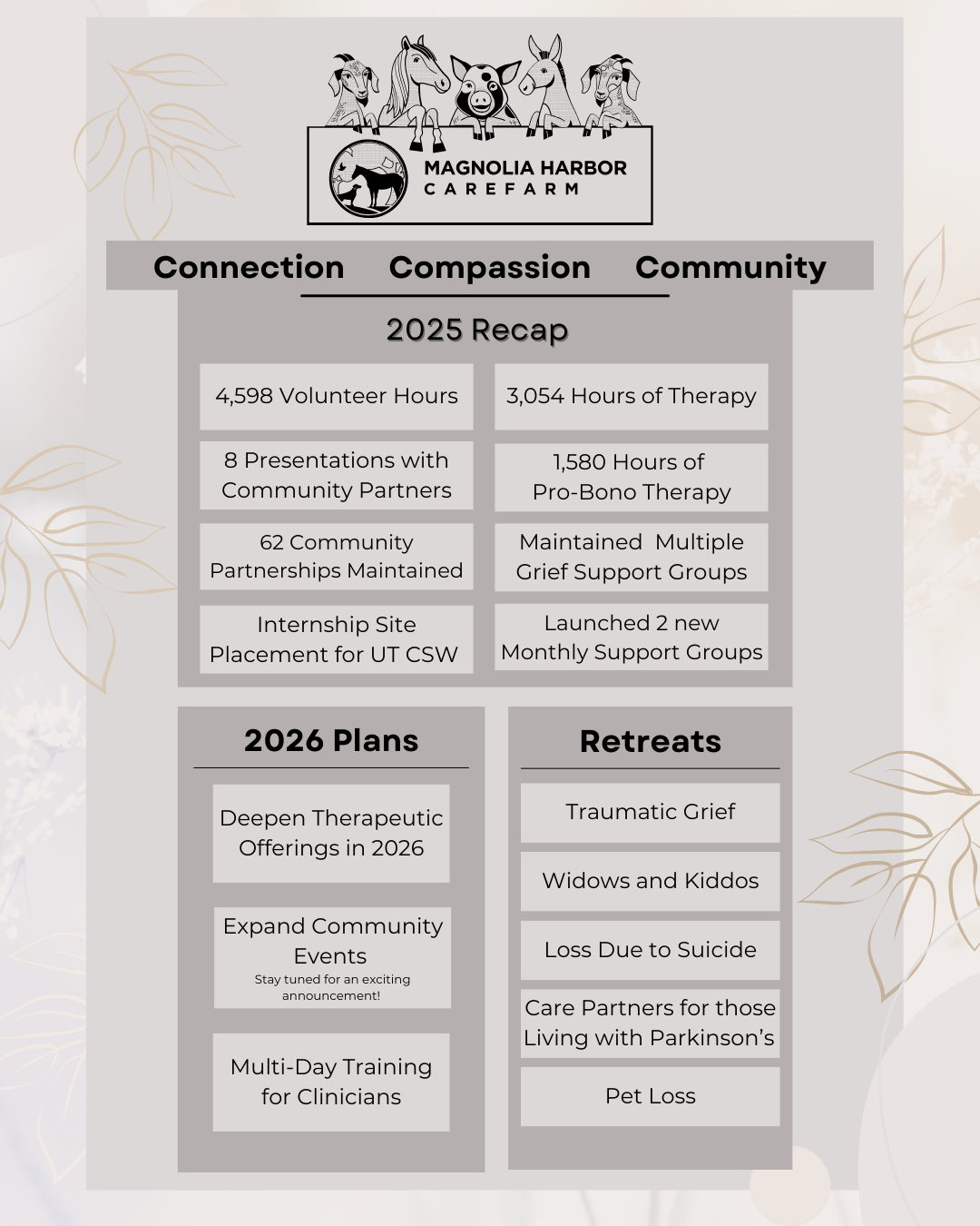 Below is a recap of the first 10-months of 2025 for Magnolia Harbor Carefarm